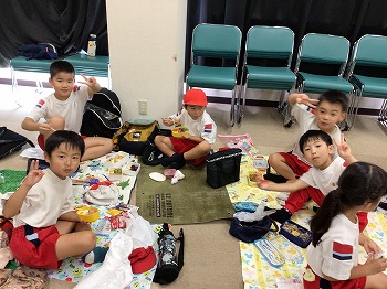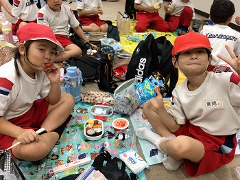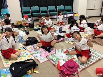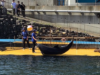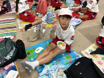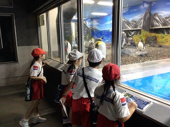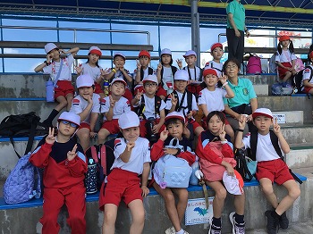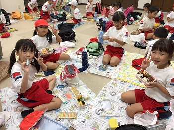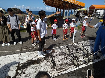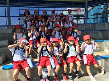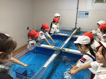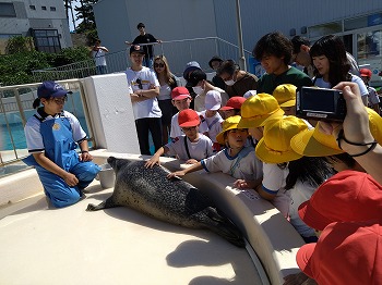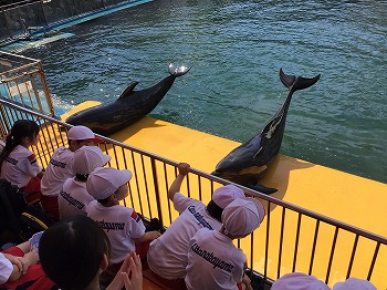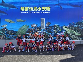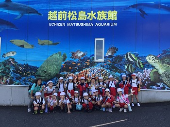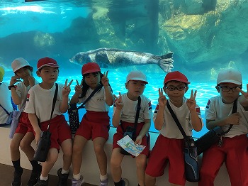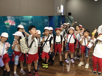 1,2年の校外学習は、越前松島水族館へいきました。バスの中では、お友達の名前を互いに呼び合うなど楽しい雰囲気でした。到着したら、まず、イルカショーを見ました。イルカのジャンプを見たり、歌声を聞いたりして、大きな拍手を送っていました。その後、おさかな館にいる、珍しい魚を見学しました。そして、しいのみ班ごとに、1時間ぐらいの自由見学の時間を取りました。海洋館、ふれあい館などをまわったり、ペンギンの散歩やアザラシのふれあいなど体験したり。2年生が1年生をリードしてまわりました。どのグループも約束を守って、時間通りに集合できてすばらしかったです。そのあとは、レクチャールームでお弁当をいただきました。愛情いっぱいのお弁当をみんな笑顔で食べていました。今日は、少し暑い日でしたが、帰ったときどの子も「○○がみれてよかった」などそれぞれが思い出話をしてくれました。楽しい1日でした。