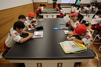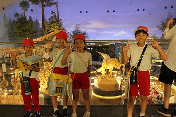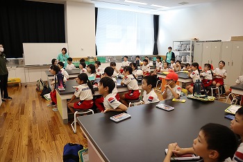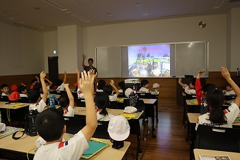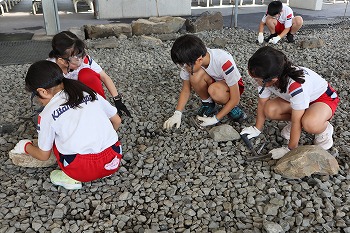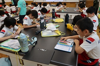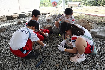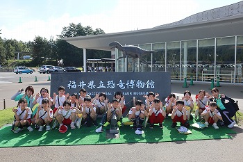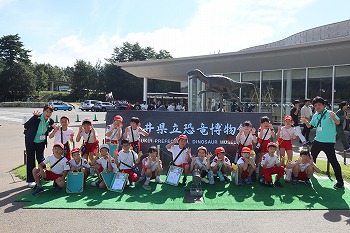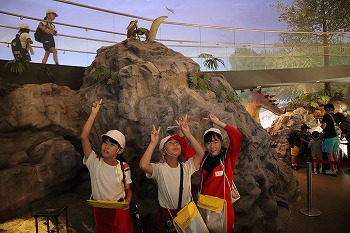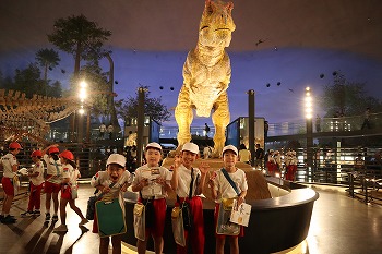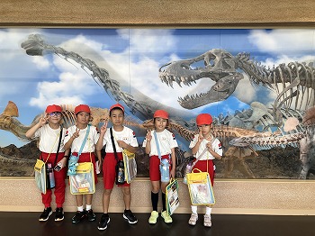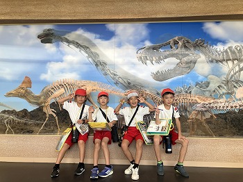3・4年生は、県立恐竜博物館へ出かけました。館内では、グループごとに分かれて見学をしました。大きな恐竜の化石や動く模型に「すごい!」と目を輝かせて見入っていました。専門の先生による恐竜授業では、福井で発見された恐竜のことを知ってと驚く声もたくさん。クイズに挑戦しながら楽しく学び、授業も真剣に聞いていました。化石発掘体験では、化石が発見されるたびに歓声があがりました。オリジナルの恐竜缶バッチづくりでは、思い思いに夢中になって取り組み、作品を完成させていました。ワクワクと発見がいっぱいの一日になりました!