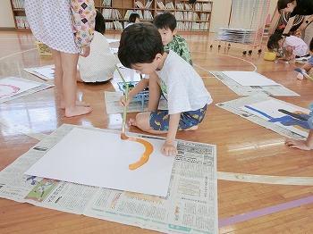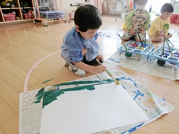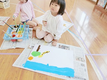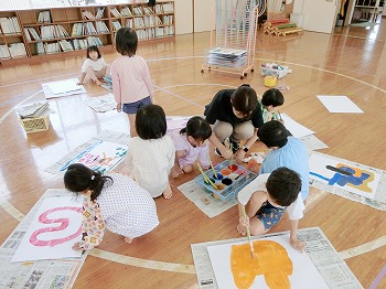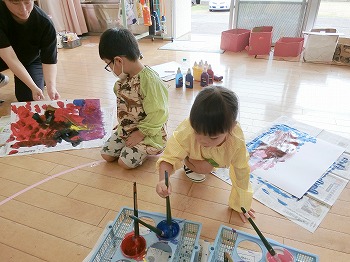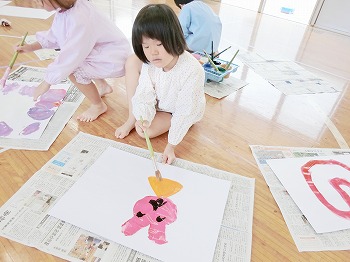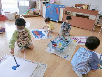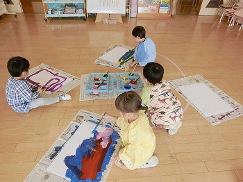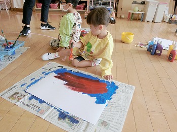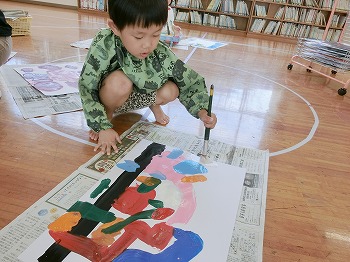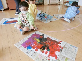 幼稚園 10/2絵の具画 2 10月,2025 北中山小学校編集者 今日は、学級の時間に絵の具画を描きました。自分で描きたいものをのびのびと描いてほしいと思います!お家でも、何をどんな思いで描いたのかなどを話題にしていただけると有難いです。