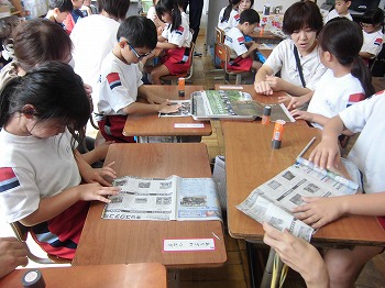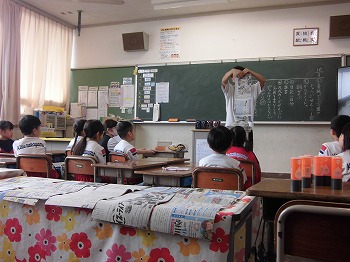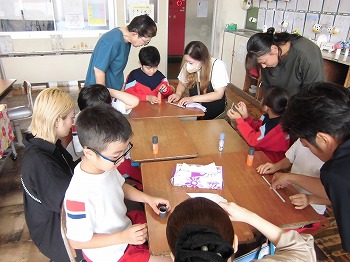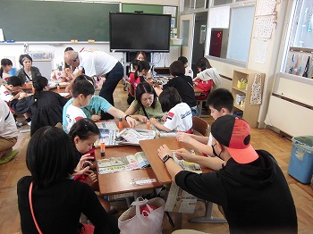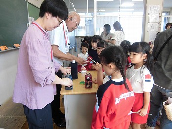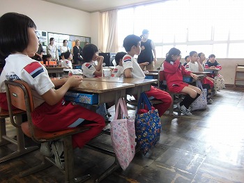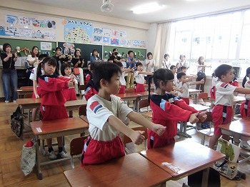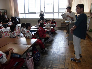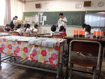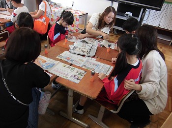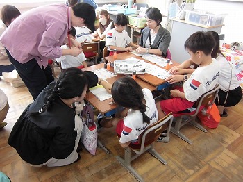 1・2年生は親子ふれあい活動として、エコネットさばえの皆さまを講師に迎え、新聞紙に鉛筆の芯をくるくる巻いて鉛筆を作る環境学習を行いました。作った鉛筆は、まるで木で作った鉛筆のように硬くて丈夫でした。また、紙の資源はごみではなく、紙袋にためてリサイクルに出すと環境にやさしいことを学びました。子どもたちは、お家の人の協力も得ながら楽しく活動していました。