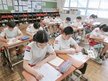 今日の授業風景です。4年生は、総合的な学習の時間の福祉学習として、市社会福祉協議会の皆さまを講師にお迎えして、車いす学習・体験をしました。3年生は、総合的な学習の時間のふるさと学習として、北中山地区語り部の会の皆さまをお迎えして、1学期に引き続いて町探検の事前学習をしていただきました。後日、3年生は今日学んだ地区を実際に町探検する予定です。本日、子どもたちのために来校いただいた多くの講師の皆さま、大変ありがとうございました。