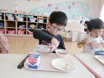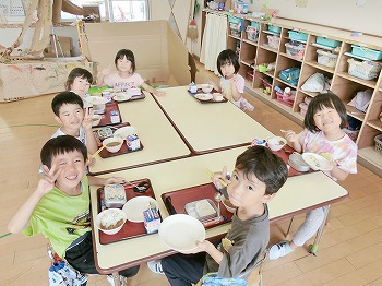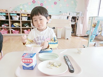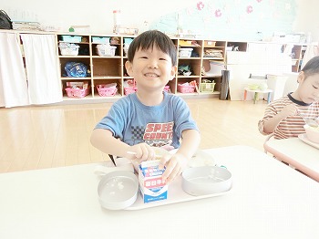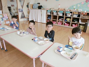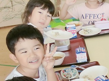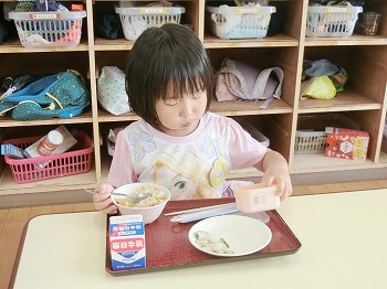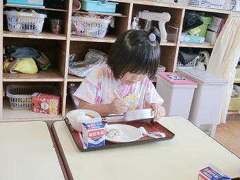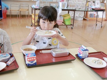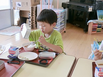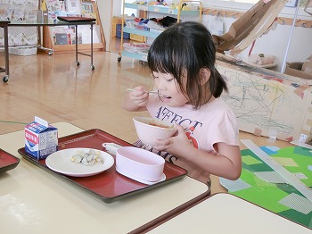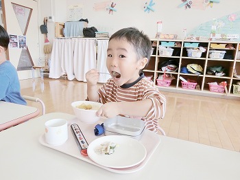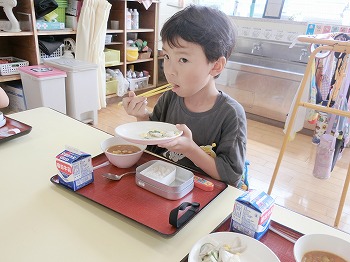 今日の給食の様子です。今日はカレーライスでした。どの子もモリモリ食べていて微笑ましかったです!