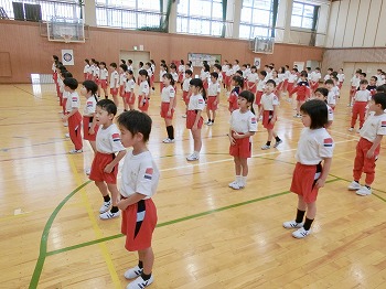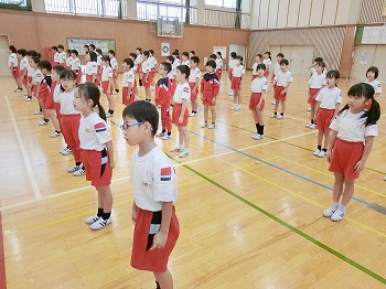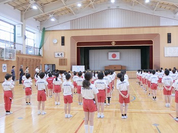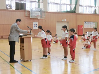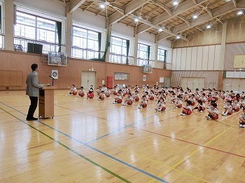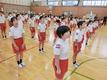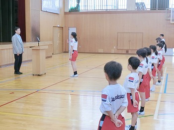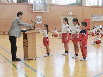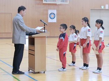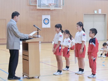 今日は月1回の全校朝礼の日です。初めに表彰をしました。受賞したみなさん、おめでとう!私(校長)のお話では、市連合体育大会に向けて激励を行いました。北中山小学校の皆さん、今日話した「克己」と「自立・挑戦・貢献」をめざして、連体の練習や学習等をがんばってください!