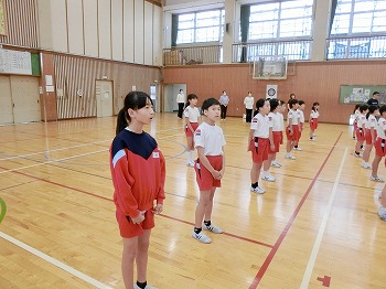 児童会長号令、朝のあいさつ!