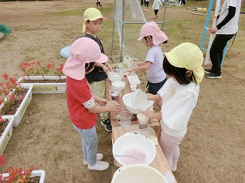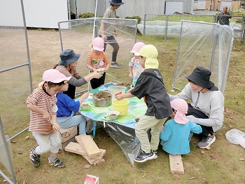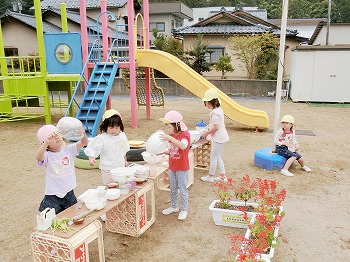 今日の朝活動の様子です。それぞれ何をしているところかを、ぜひご家庭で話題にしてみてください。