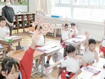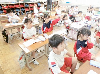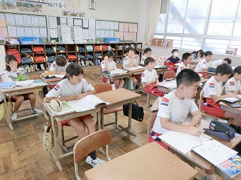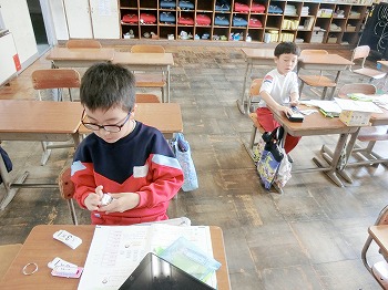 今日の授業風景です。4年生は、席替えでした。新しい席はしっくりきたかな?2年生は、九九の暗唱をしていました。どの子も元気に取り組んでいました。