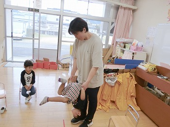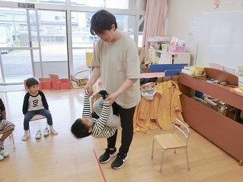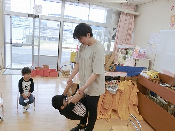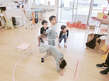 今日の朝活動の様子です。きく・ばら組さんは、歌の掛け合いをしていました。とっても上手でした!もも組さんは、逆上がりのトレーニングをしていました。頭を下にする動きはとてもよい動きなので、ぜひ普段から逆立ちなどで鍛えてみましょう!