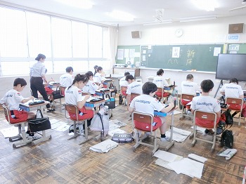 今日の授業風景です。1年生は、体育で1000mの持久走をしていました。女子は走りっぷりがなかなか良かったです。男子の声援もがんばっていました!その後の男子の走りはどうだったかな?