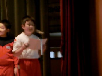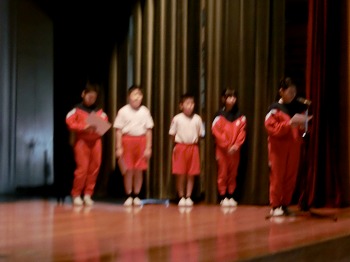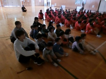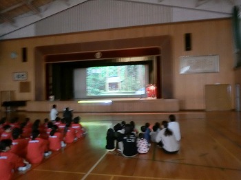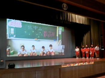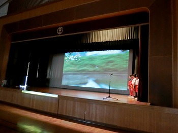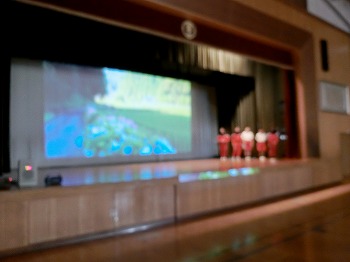 今日は、11月2日(日)北中山地区文化祭での北中山小学校発表に向け、「ふるさと」一筆啓上の校内発表会を行いました。ふるさとや子どもたちの動画映像に合わせて、金賞の5人が朗読発表しました。いい感じで発表してくれて、とても良かったです。地域や保護者の方々にとっても感動的な映像や音楽になっていると思います。小学校・幼稚園の全員、北中山全7地区の映像が流れますので、発表の11月2日(日)10時25分ごろ(出演時間は前後します)にはぜひ公民館にお越しいただき、ご覧いただければ幸いです。(写真は暗くてブレてますが、本番当日は明るい体育館での発表です!)