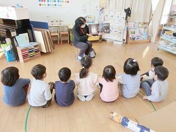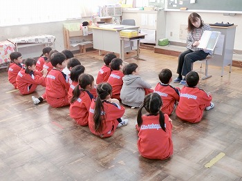 今日は、読み語りボランティアの皆さまをお迎えして、全学年で読み語りをしていただきました。私(校長・園長)も聞かせていただきましたが、とても話しぶりが上手で聞き入ってしまいました。子ども達も楽しみにしています。ボランティアの皆さま、いつもありがとうございます!
