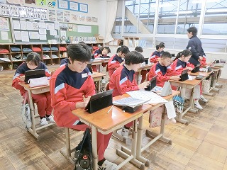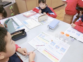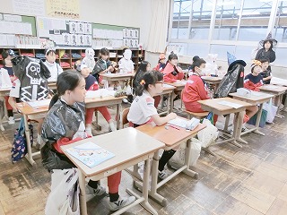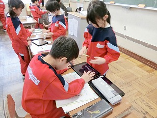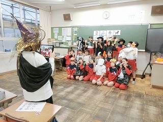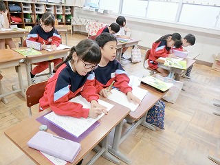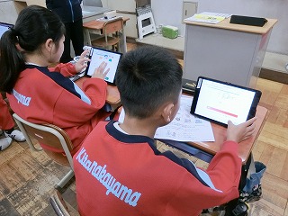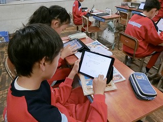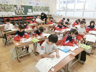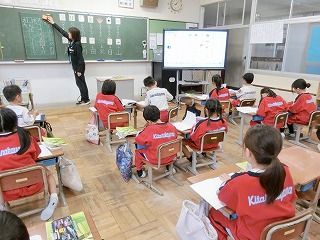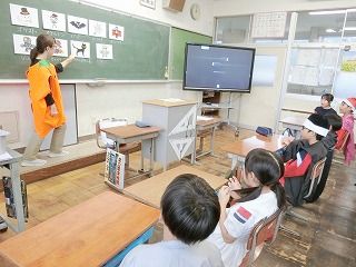 今日の授業風景です。1年生は国語の時間に楽しく漢字の学習を、2年生は算数の時間にかけ算を頑張っていました。3・4年生は外国語の時間に、ハロウィンのビンゴゲームを楽しみました。また、5年生は理科の時間に、食塩を水に溶かす実験をしていました。6年生は外国語の時間に、キュビナで「1日のスケジュール」の英会話問題に挑戦していました。