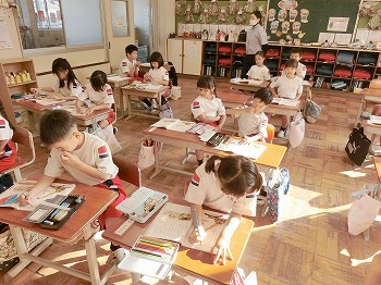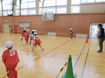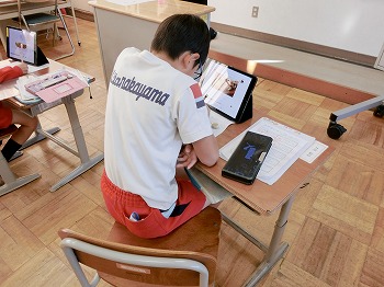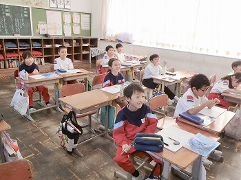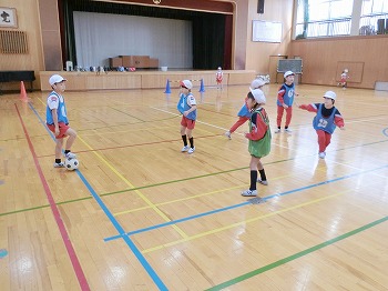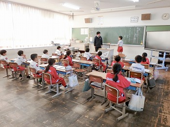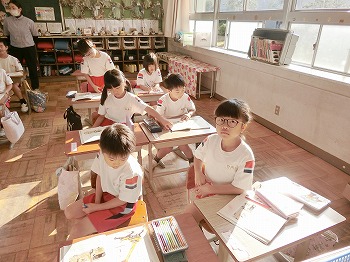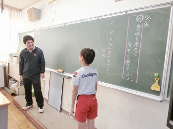 今日の授業風景です。1年生は、国語で自分で考えて読み取り、教科書にラインを引いて発表していました。3年生は、国語で3年生が考えたキャラクター「きーたくん」をもとに同音異義語を学習していました。笑顔いっぱいで、私(校長)ももらい笑いしてしまいました。2年生は、体育で3チーム対抗サッカーゲームをしていました。