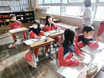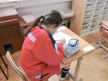 今日の授業風景です。落ち着いて授業に取り組んでいました。風邪やインフルエンザが流行っていますから、普段から体を冷やさないように気を付けましょう。