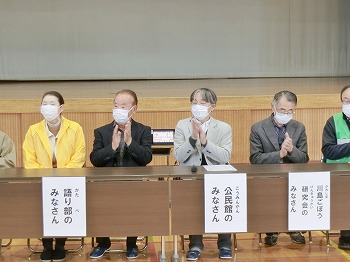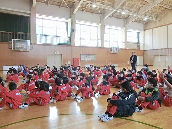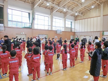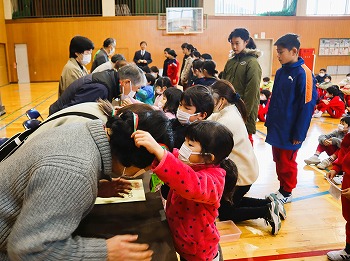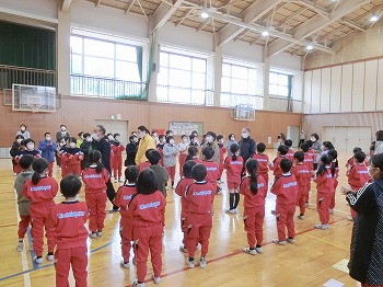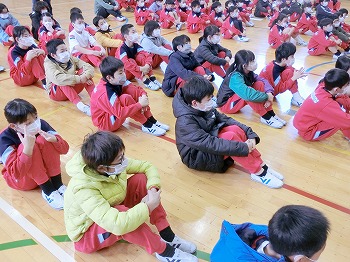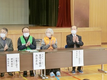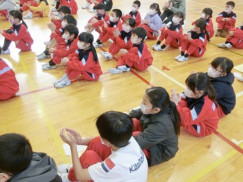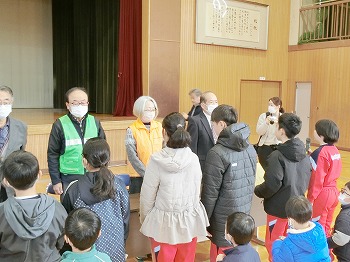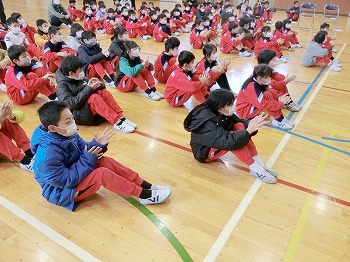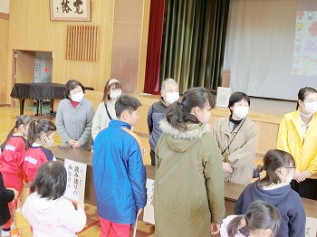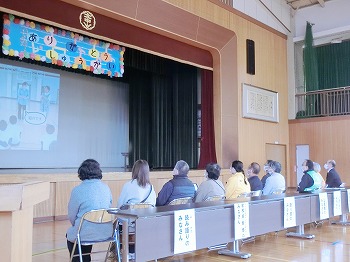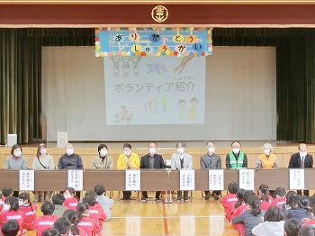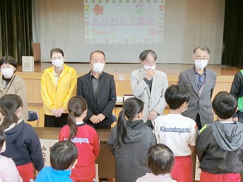 今日は、日ごろお世話になっている地区公民館や地域ボランティアの皆さまの代表をお迎えして、ありがとう集会を行いました。ご参加いただき、大変ありがとうございました。児童・園児たちは、感謝の気持ちを映像やクイズにしたり、お手紙に書いたり、メダルを作ったりして、代表の皆さまに贈りました。児童・園児のため、北中山地区の皆さまは本当に熱心にいろんな体験学習をしてくださっていると、私(校長・園長)も感じます。今後とも協働して子供たちの成長のためにがんばっていきたいと思いますので、よろしくお願いします。(2に続く)