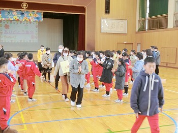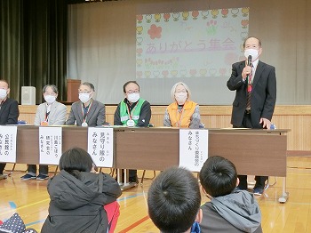 ありがとう集会の続きです。「ボランティアの皆さんのおかげで北中山がますます好きになりました」という子どもたちの感想にあったように、これからも子どもたちの安全・安心な学校生活や豊かな学習環境のために、そして何よりふるさと北中山を愛する子の育成のために、地域と学校が一体となって努力していければと思います。今後ともよろしくお願いします。保護者の皆さまにおかれましても、よろしければ地区の各ボランティアに参加していただければ幸いです。