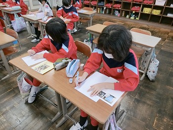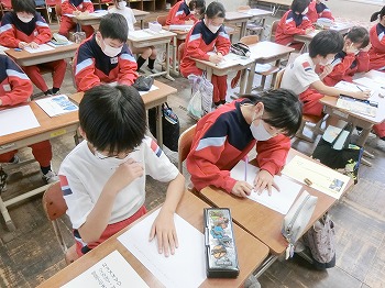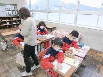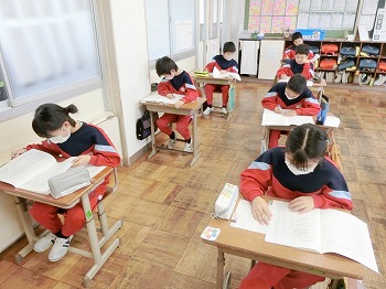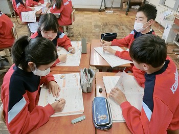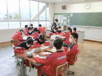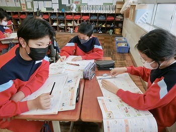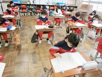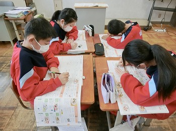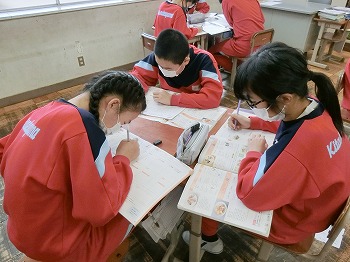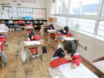 今日の授業風景です。4年生は、国語で自分で調べ学習してまとめたリーフレットの読み練習をしたり、学習のふり返りを書いたりしていました。5年生は、SASA(県学力調査)の国語・算数に真剣な表情で集中して取り組んでいました!明日は、社会・理科です。6年生は、家庭科でグループに分かれて自分たちの班でつくりたいメニュー献立を話し合っていました。子ども達の真剣な献立メモを見ていると、きっとおいしくなると感じました!