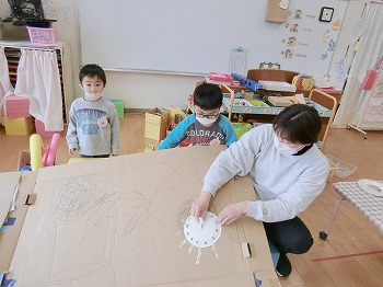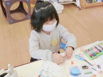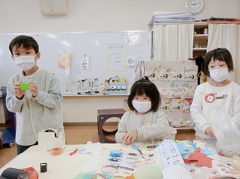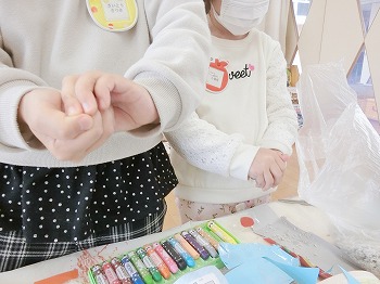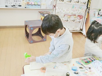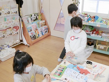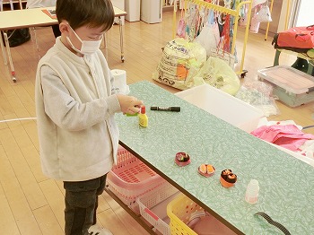 今日の朝活動の様子です。きく・ばら組さんは、お寿司屋さんごっこをしていました。なかなか素敵な軍艦巻きや握り寿司が完成していて、一生懸命に握る姿がとっても微笑ましかったです!もも組さんは、かくれんぼごっこやおもちゃの製作をしていました。元気いっぱいです!