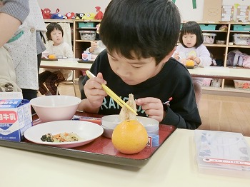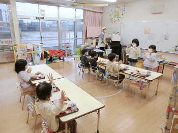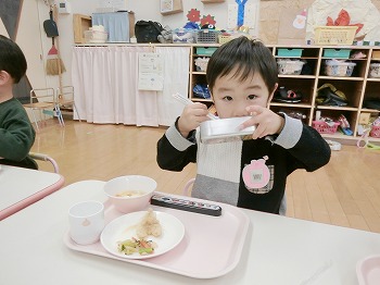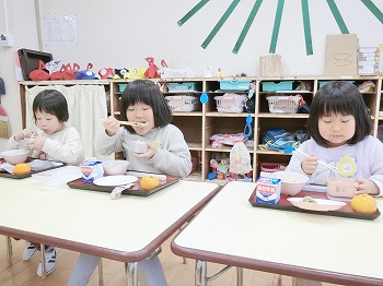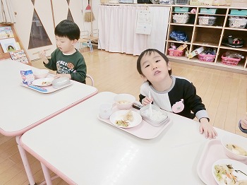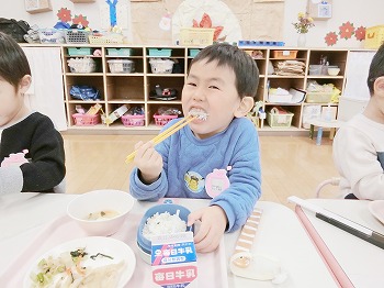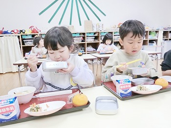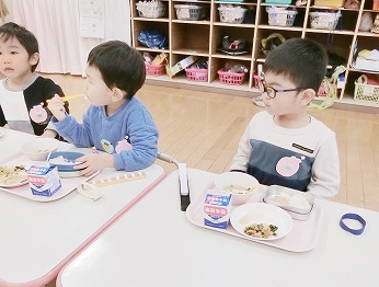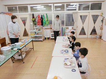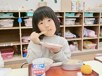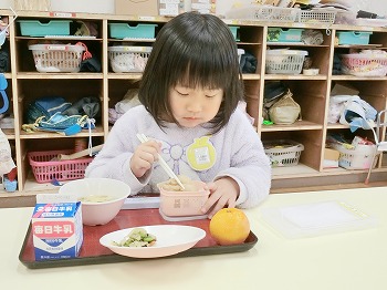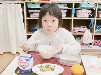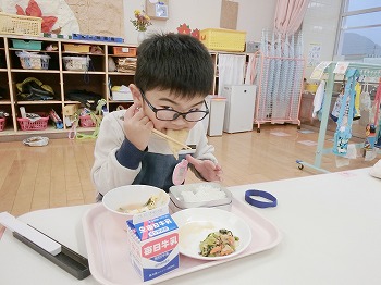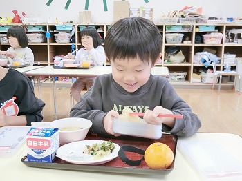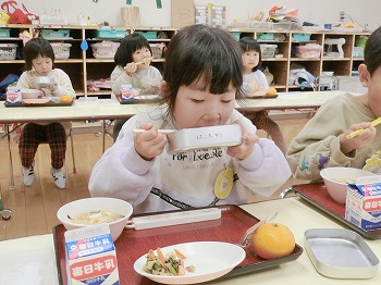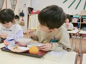 今日の給食の様子です。今日は、天丼メニューで天つゆとともに、どの子もおいしく食べていました。