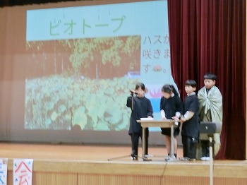 今日は3年生が、語り部の皆さまのご指導を受けながら学んできた北中山地区のお宝について、お世話になった語り部の皆さまをご招待して学習発表会をしました。また、3年生保護者を始め地域の皆さまにも参観に来ていただきました。本日は、ありがとうございました!発表会は、いくつかの地域のお宝劇を中心に、1・2・4年生へのクイズもあり、とても楽しかったです!また、語り部の皆さまも、今年度大変ありがとうございました!来年度もまたよろしくお願いいたします!(2に続く)