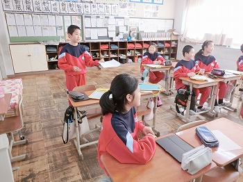 今日の授業風景です。どうぞご覧ください。ぜひ写真を見ながら、学校生活について話題にしてみてください!6年生が、6限目に調理実習のベーコンポテトサラダを校長室に持ってきてくれました。ポテトの茹で加減と塩梅がとてもよくおいしかったです!ありがとう!