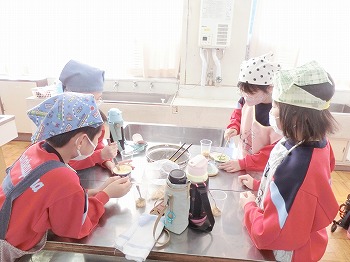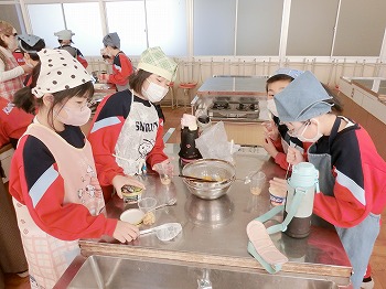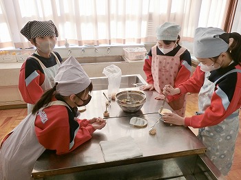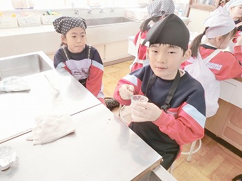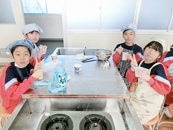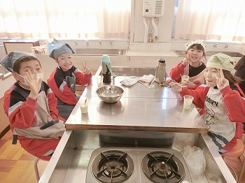 今日4年生は、お楽しみ会でパフェづくりをしました。硬いアイスを四苦八苦しながら4分割している姿が微笑ましかったです。みんなで食べて幸せそうでした!