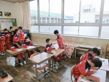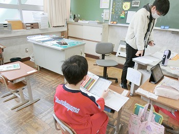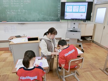 今日の授業風景です。4年生は、理科で冬の大三角について学習していました。冬の夜空は澄んでいてきれいですから、晴れの日にぜひ自分の目で星の位置を確かめてみましょう!1年生は、体育支援事業で講師の先生をお迎えして器械体操に挑戦していました。初めての動きも練習してできるようになれたかな?