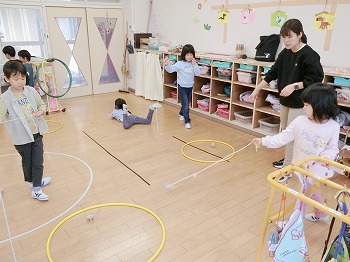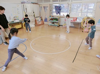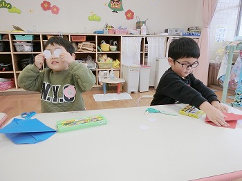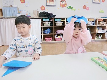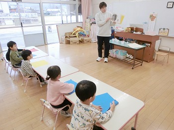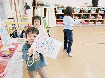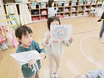 今日の朝活動の様子です。きく・ばら組さんは、こま回しの練習をしていました!明日のこままわし会、しっかりがんばってくださいね!もも組さんは、オニの絵本の読み語りを聞いたあと、オニのお顔づくりをしました。担任の先生の話をしっかり聞いて、楽しく作っているようでした!また、今日は田中幸一先生が来園されました。2025年市民文化賞、おめでとうございます!北中山幼稚園は園歌を作詞作曲していただいたゆかりがあり、行事で歌い継いでいます。これを機に、副園長先生より講師として歌の教室を2月13日(金)にお願いしました。園児の皆さん、当日は元気いっぱい楽しく歌いましょう!