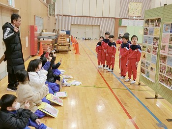 今日は、東部3小学校の片上小学校・北中山小学校・河和田小学校の3年生が北中山小学校に集まり、小小連携事業として発表会とミニ運動会を行いました。初めに3年生の先生からお話を聞いた後、グループに分かれて自己紹介をしました。名前を覚えてもらえたかな?その後、総合的な学習の時間の各小学校実践の発表会をしました。お互いにしっかりと他校の子にアウトプットしていました。続いてミニ運動会として玉入れやリレーなどを3小学校が赤青黄のグループに分かれて対抗戦しました。所々で歓声や応援の声が上がり、いっしょに楽しんでいる姿が微笑ましかったです!来年度以降も、機会があれば楽しく交流してほしいと思います。