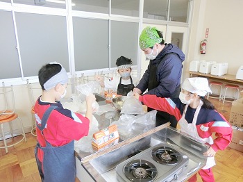 今日の授業風景です。1年生は、体育で鉄棒の技に挑戦しシールをもらっていました。練習してどんどんシールをもらいましょう!2年生は、お楽しみ会に向けてグループごとに準備していました。3年生は、食育で講師の先生をお迎えして、木綿豆腐づくりをしていました。今日は、お子さんの作り立ての木綿豆腐とおからを持ち帰りますから、ぜひ食事の一品に加えてあげてください!