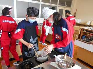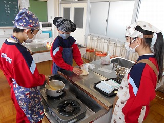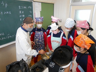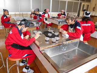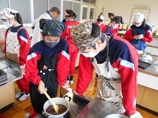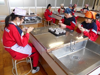 今日は、6年生が家庭科の時間に、中戸口町のにしげんさん(ニシタニ製菓様)をお迎えして、水ようかん作り体験をしました。用意していただいた生こしあんや三温糖・黒糖など、材料は体に優しいものばかりでした。子どもたちは卒業を前に、感謝の気持ちをおうちの方にも伝えようと、心を込めて作った水ようかんを1つずつ持って帰りました。