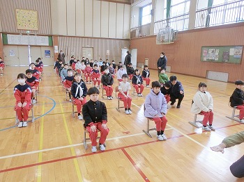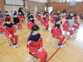 今日は、在校生が初めて卒業式の練習をしました。まずは座る姿勢や礼の練習です。担当の先生から注意点を聞いて練習するうちに、だんだん上手くできるようになっていました。明日の全体練習でもがんばりましょう!