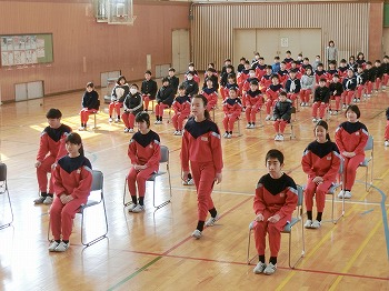 今日は、最後の式練習の前に鯖江市のさくら賞(6年間欠席なし)表彰を行いました。とても立派なことだと思います。おめでとう!また、その後に6年生全員が特別教室の清掃奉仕作業してくれました。6年生のみなさん、ありがとう!