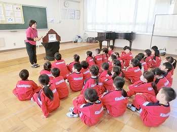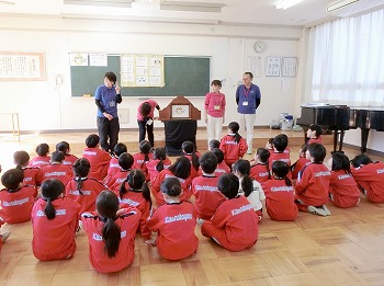 今日1・2年生は、NPOみるみえるの先生方による目の健康教室に参加しました。最初に人間の体の一部である目についてのお話をききました。 その後、顔や体を動かさずに目だけを動かすトレーニングやグループに分かれていろいろな目のトレーニングを楽しみました。最後に紙しばいです。紙しばいでは20分目を使ったら、20フィート(約6m)の距離を20秒みることが目の健康につながることを学びました。スマートフォンやゲームの利用で子ども達の視的環境が変化しています。お家でもぜひ実践してみてくださいね。