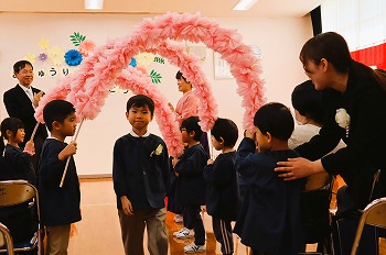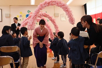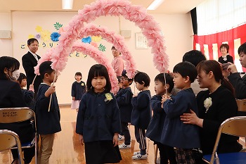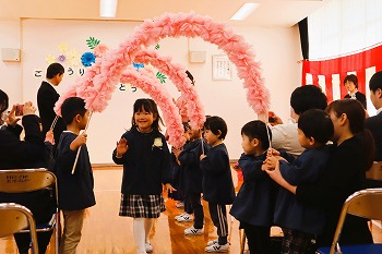 今日は、北中山幼稚園修了式を行いました。きく組さんも、元気に全員登校してくれて本当に良かったです。修了証書授与の様子や幼稚園の思い出を語る様子からは、とても成長を感じさせました。私(園長)も感激すると同時に、大変微笑ましかったです。ばら・もも組さんも、きく組さんとのお別れのことばの掛け合いがとてもよかったです!最後は、ばら・もも組さんの花道を通って退場しました。修了児(きく組)の保護者の皆さま、これまで北中山幼稚園の教育活動に、多大なるご理解とご支援をいただきまして、本当にありがとうございました。小学校でもよろしくお願いいたします。