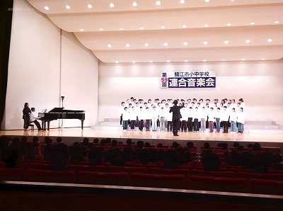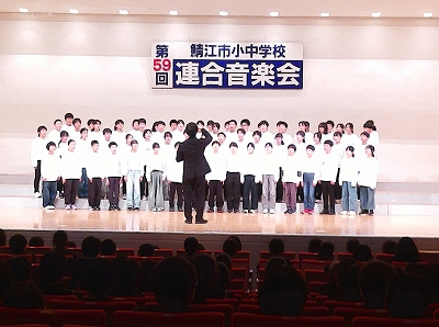 連合音楽会 20 11月,2025 惜陰小学校編集者 6年生が鯖江市小中学校連合音楽会に出場しました。美しいハーモニーや高音の響きに、皆聴き入っていました。他校の合唱や東陽中学校2年生の合唱も併せて心が洗われる時間でした。