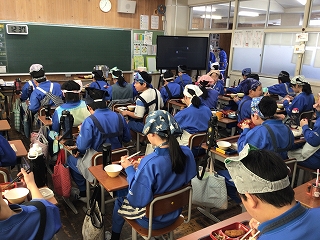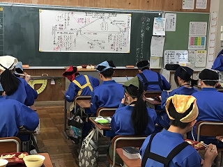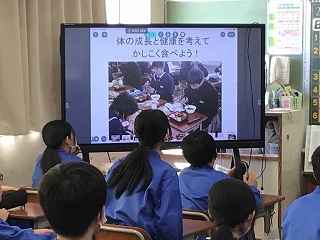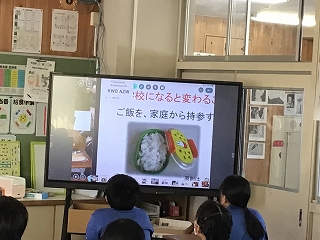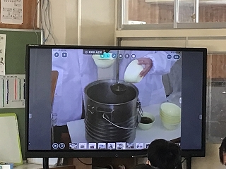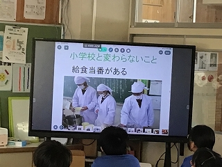 6年生が、ひとあし先に中学校の給食を試食しました。栄養教諭の先生から説明があり普段と違う配膳や給食に中学校入学の実感を増したようです。
