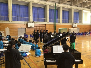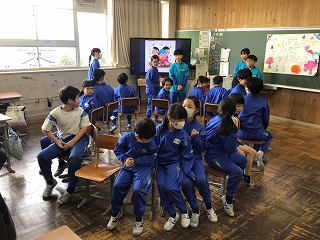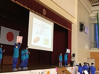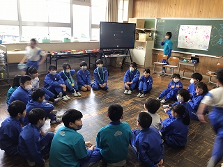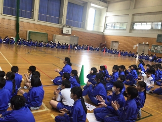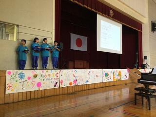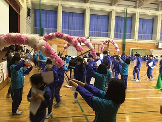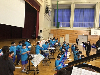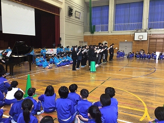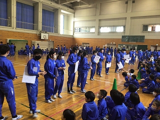 5年生が中心となって、盛大に6年生を送る会を行いました。第1部は教室で縦割り班ごとに遊び、第2部では、体育館で〇×クイズをしたり5年生の合奏や先生方の合唱を贈りました。6年生の皆さんも楽しんだり合唱・合奏に聴き入ったりしていました。5年生の皆さん、ありがとうございました。