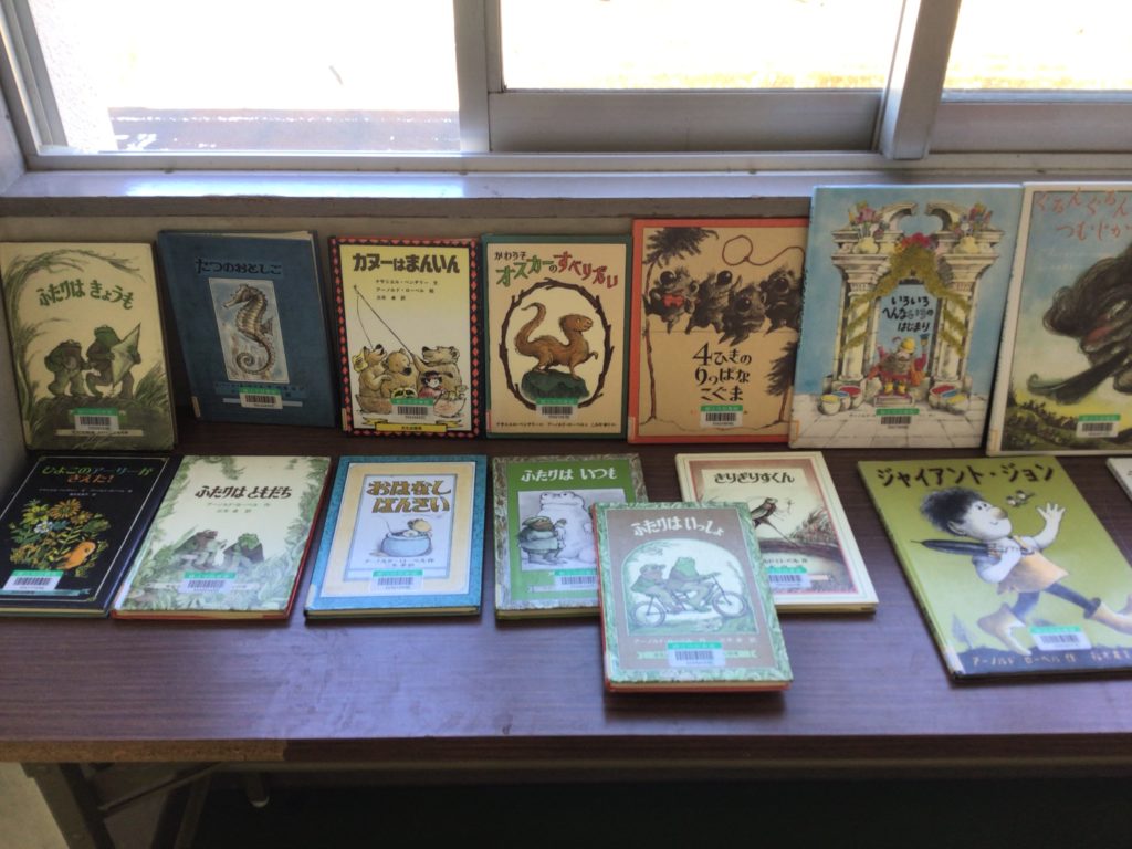 鯖江市の文化の館にお願いして、その他のアーノルド・ローベルの作品を集めて貸していただきました。2年生の廊下に展示してあります。