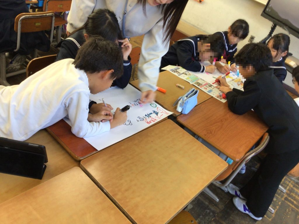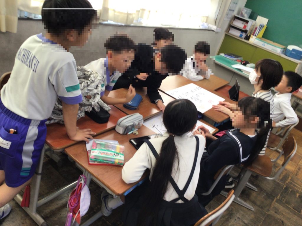 この班はゲームのやり方を話し合っています。右から2人目が特別支援学校の先生です。