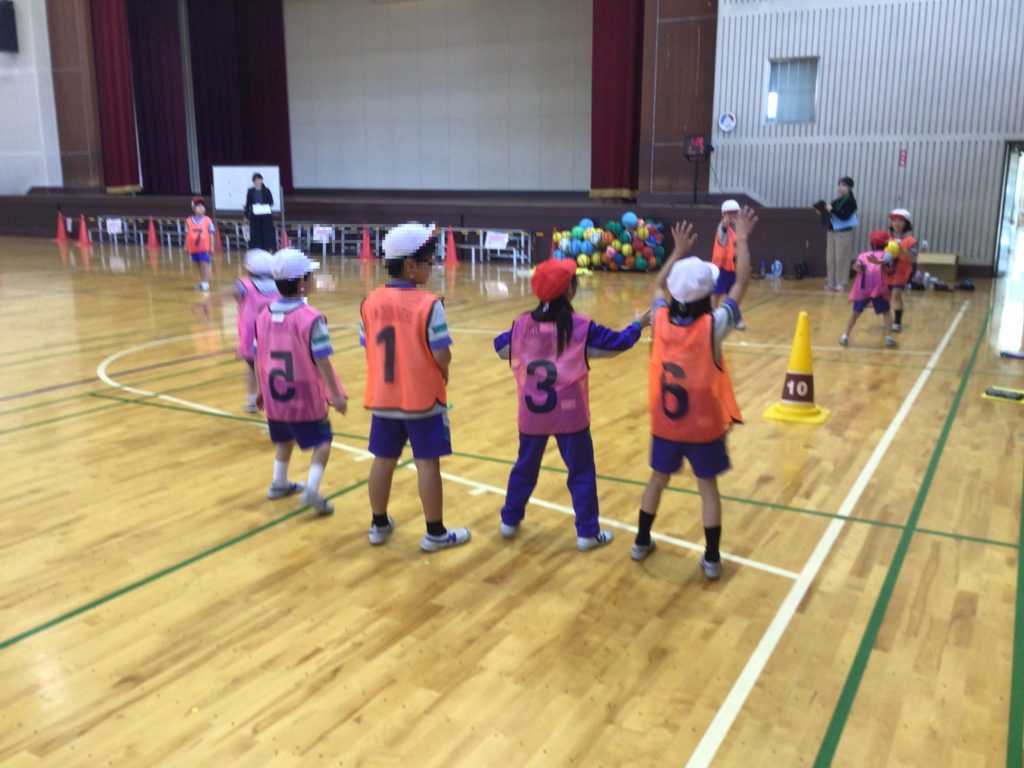 攻撃と守備に分かれ、コーンにボールを当てた得点を競います。