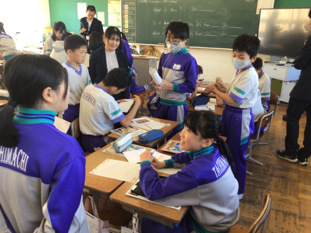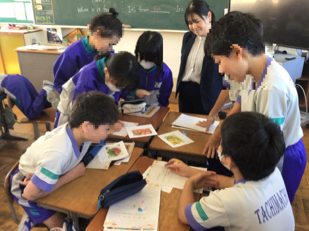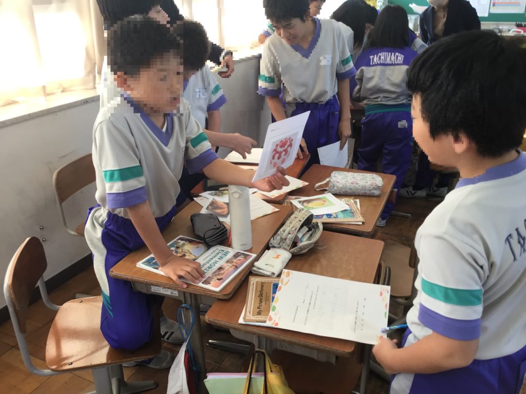Tachimachi Food Festival開催という設定で、英語で食べ物の生産国をたずね合う活動をしました。
