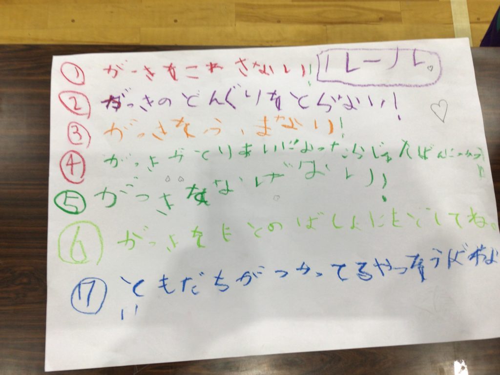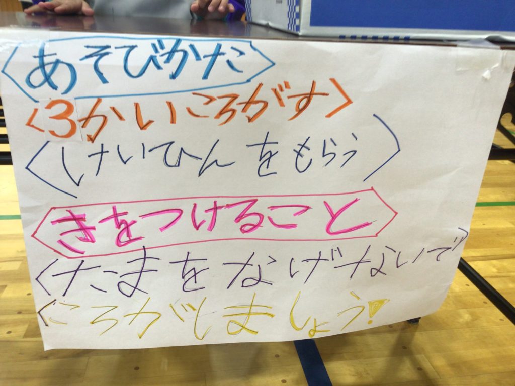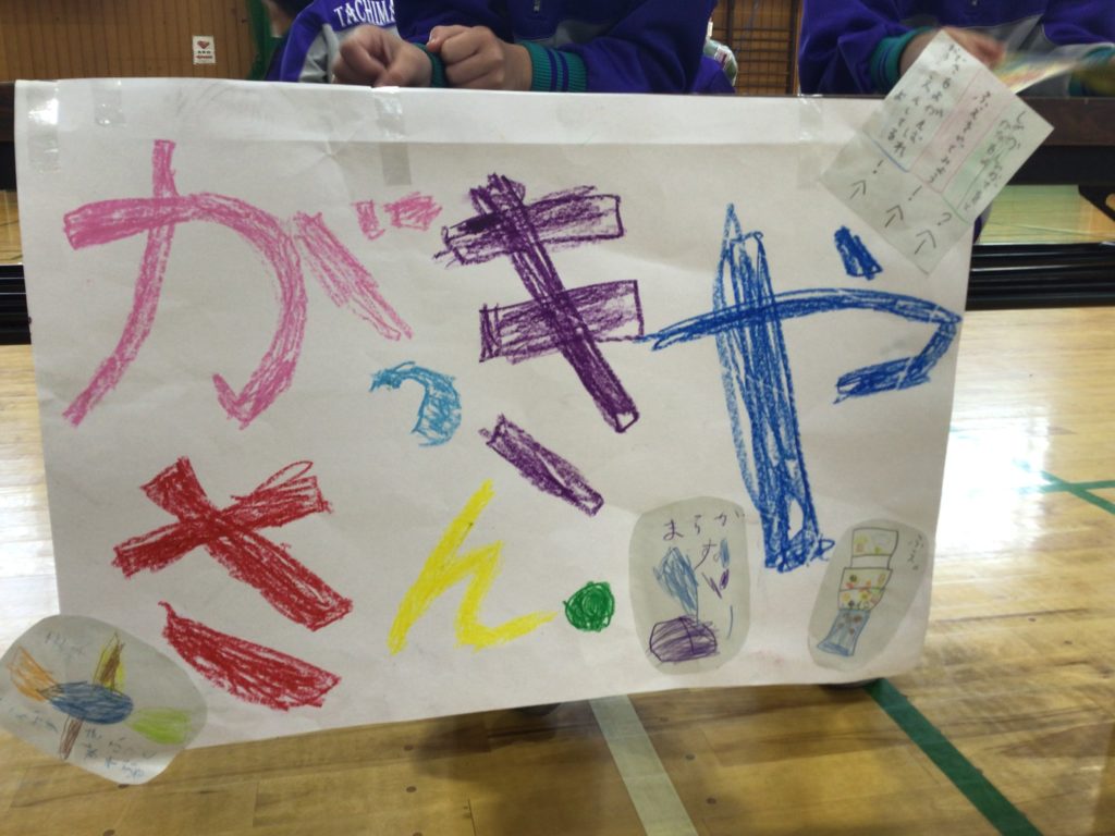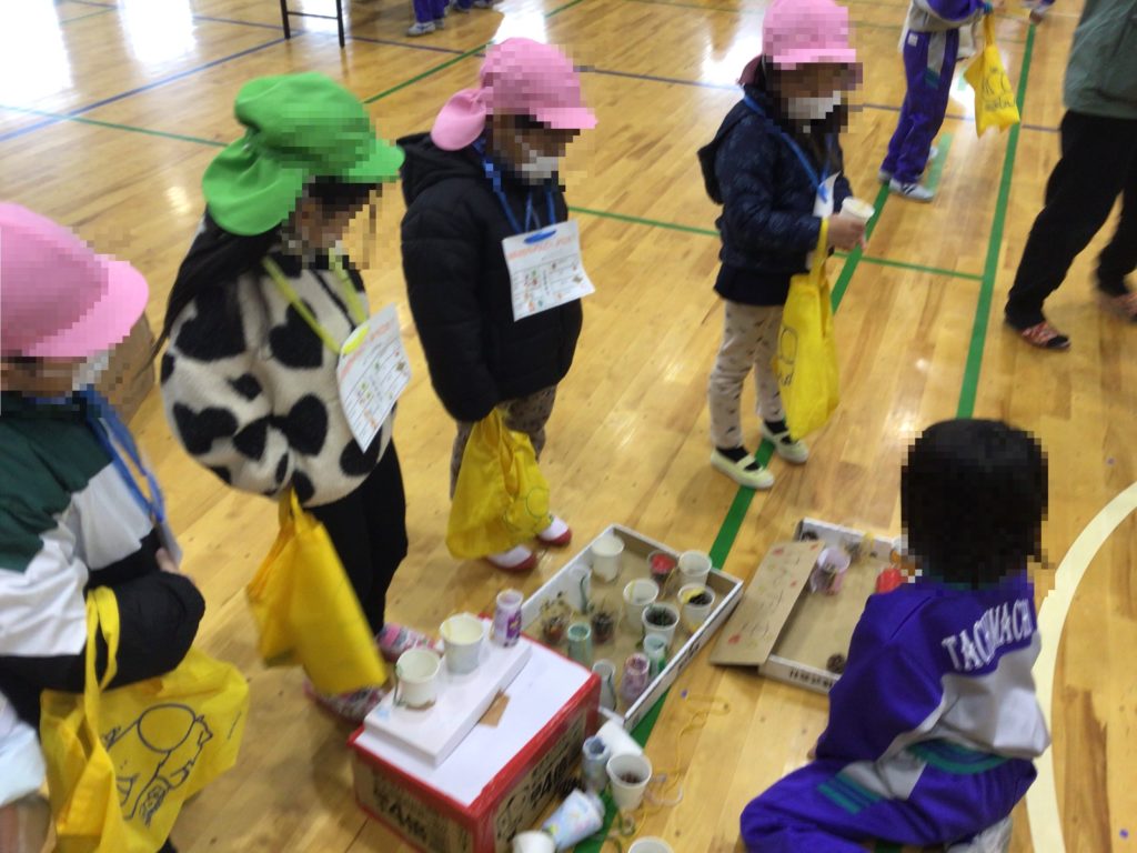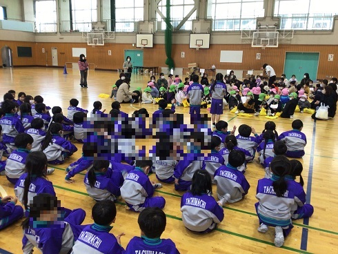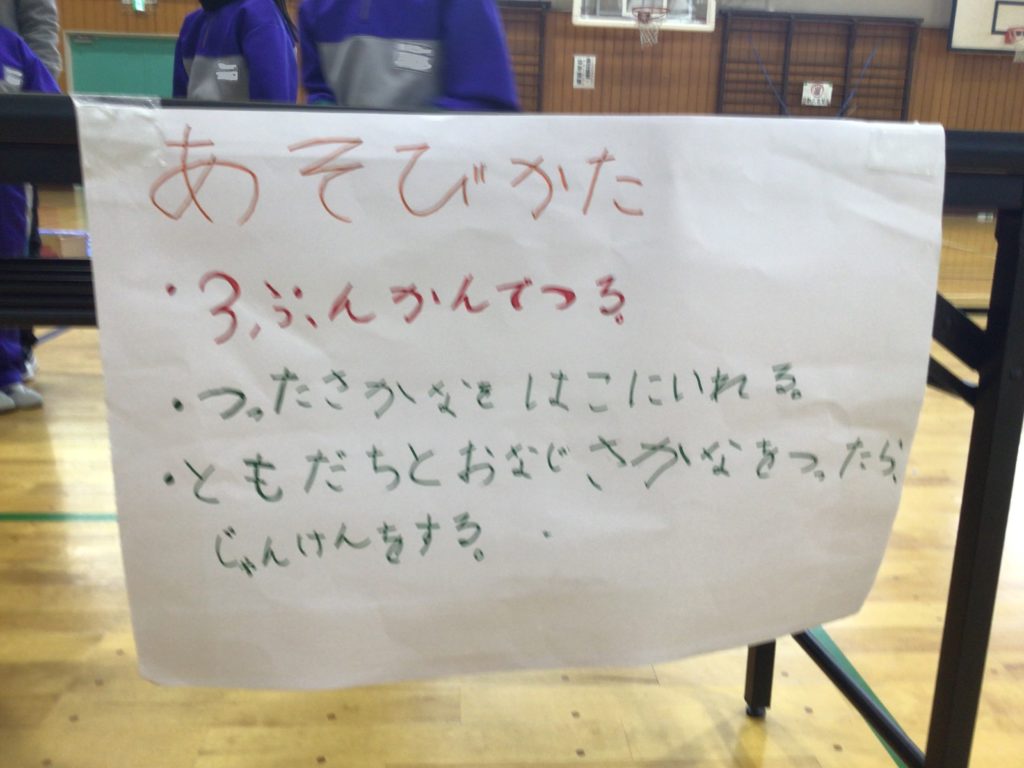 年長さんをご招待「秋のおもちゃランド」(1年生) 19 11月,2025 立待小学校編集者 1年生が、立待保育所、吉江保育園、白蓮保育園の年長さんをお招きして、大々的に「秋のおもちゃランド」を開催しました。体育館の後ろにいるのが年長さん、後ろから前に伸びる真ん中の通りが「おもちゃランド」のメインストリートです。 1年生の皆さんは、メインストリートの左右に4つずつ、計8つのコーナーを設けて、年長さんに楽しんでもらいます。 1つ目 あきのさかなつりやさん 2つ目 こまやさん 3つ目 めいろやさん 4つ目 がっきやさん 5つ目 くじびきやさん 6つ目 まといれやさん 7つ目 けんだまやさん 8つ目 たのしいぼうりんぐ 最後に感想やお礼を伝え合っておもちゃランドは終園。年長さんに楽しんでもらって、1年生の皆さんも大満足。大成功! 。