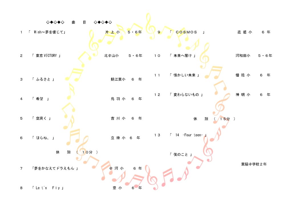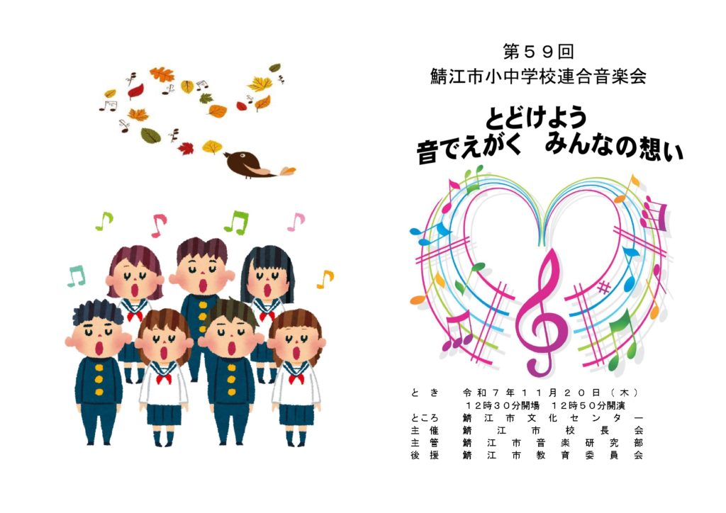 9月に2学期が始まってから今日まで、6年生の皆さんはずっとがんばってこの曲を練習してきました。特に本番を間近に控えた先週頃からは、6年生の皆さんの美しい歌声が校舎中に響いており、日に日に上達する様子がよくわかりました。そのような中でも、今日の本番はこれまでで最高の歌声を響かせてくれました。6年生の皆さん、ありがとう。そして、歌詞に「うたはあなたの大切なともだち」とある通り、この曲をずっと大切にしてください。