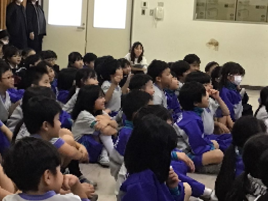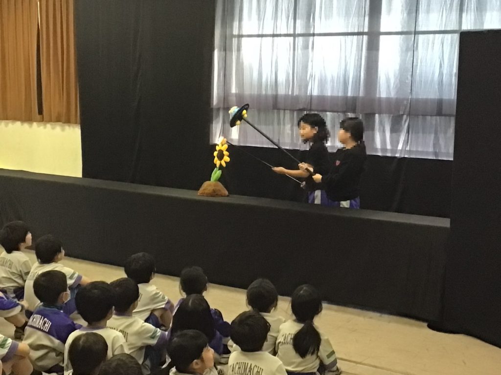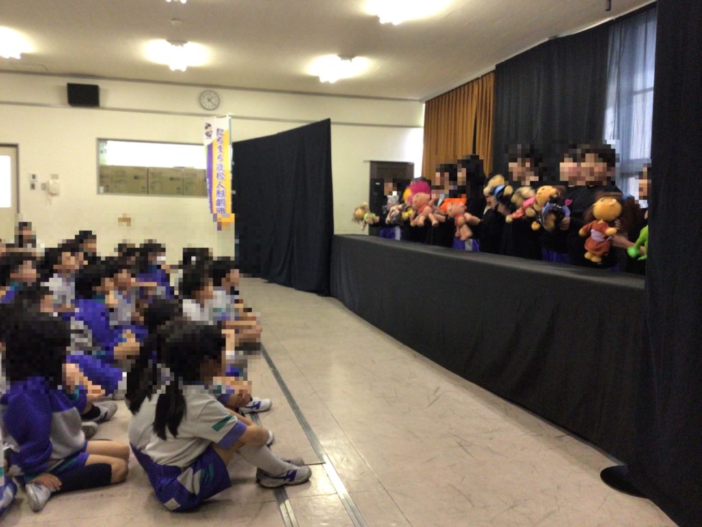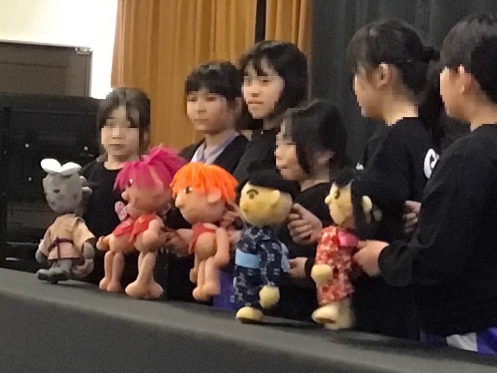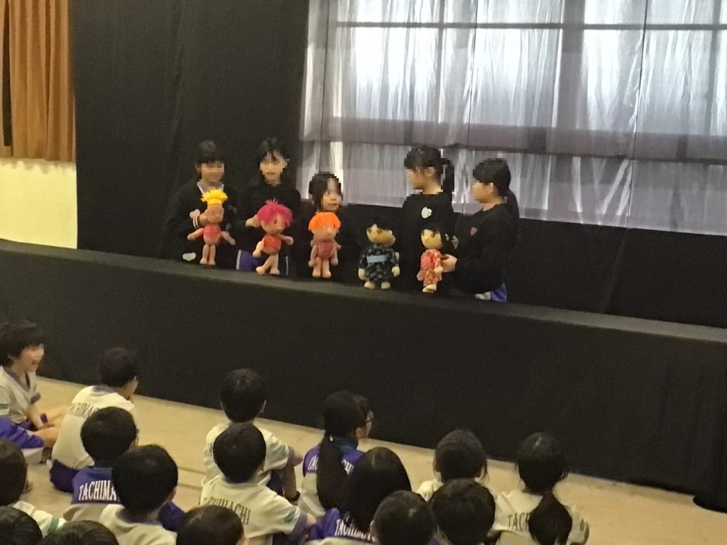 立待公民館では、立待小の児童による「立待近松人形劇団」の活動を行っています。今日は劇団が立待小で1年生を対象に劇を披露してくれました。