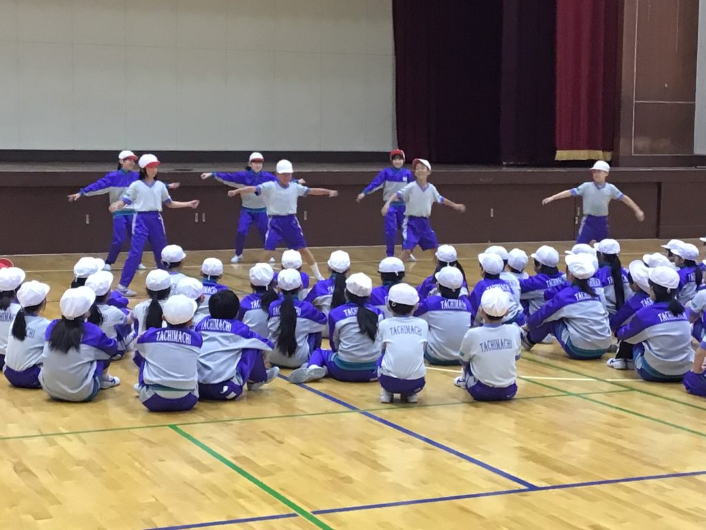 ダンス発表会(4年生) 8 12月,2025 立待小学校編集者 4年生の体育「表現活動(ダンス)」の単元の様子です。1クラス3グループの、学年で計12グループに分かれ、これまで7時間かけて練習してきました。今日はその成果の発表会です。 曲は米津玄師の「IRIS OUT」 で、さびの部分の振付は自分たちで考えました。どのグループもクール! 「♪今この世で君だけ大正解」でキメのポーズ。ダンスがかっこいい上に、観客側も盛り上げ上手で会場は大盛り上がり。4年生で一体になった一時でした。