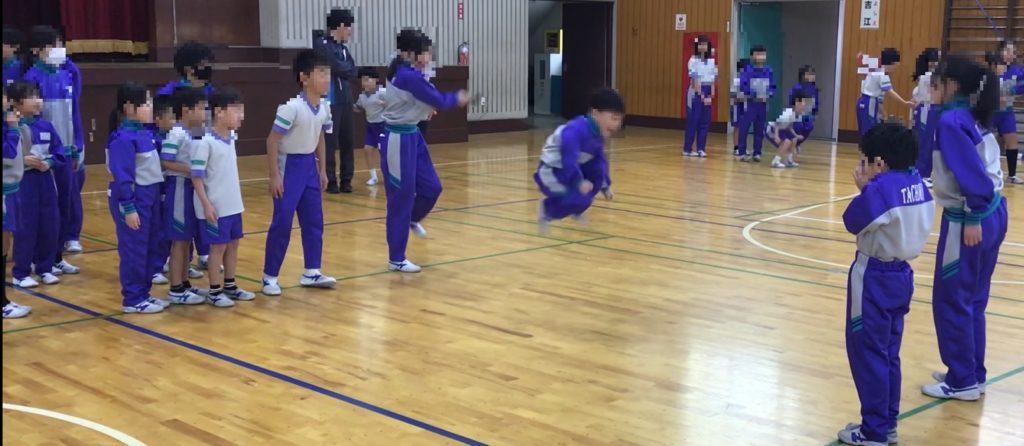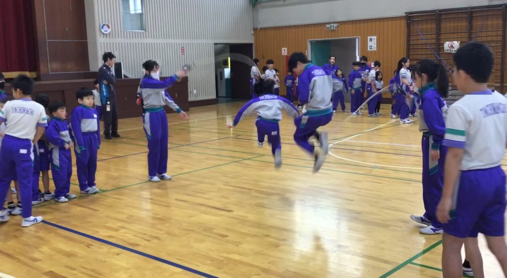 1,6年生が二人でタイミングをそろえてジャンプするのはなかなか難しいようです。