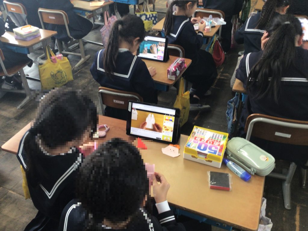 これは、「折り紙クラブ」の様子。動画で折り方を習っています。
