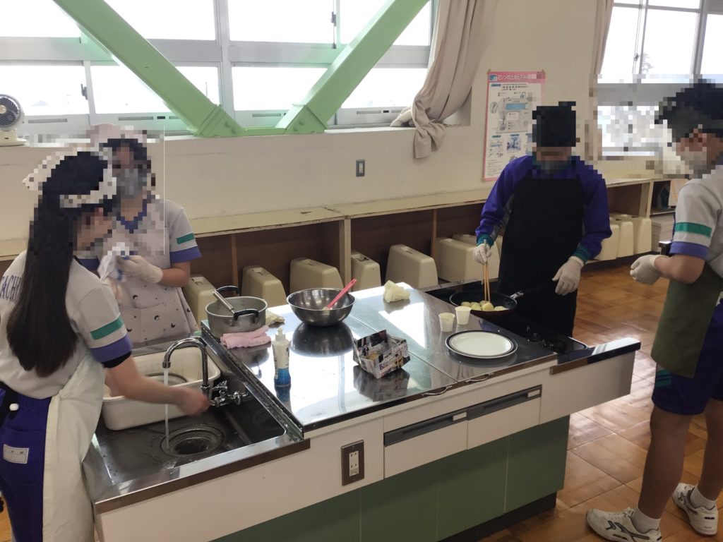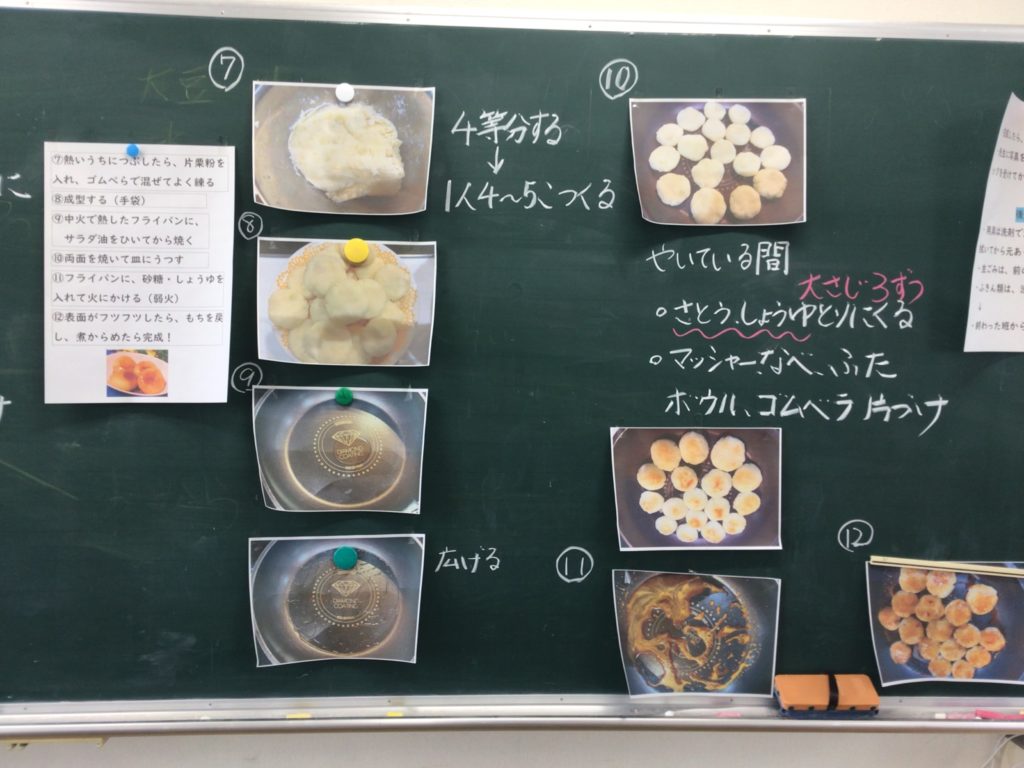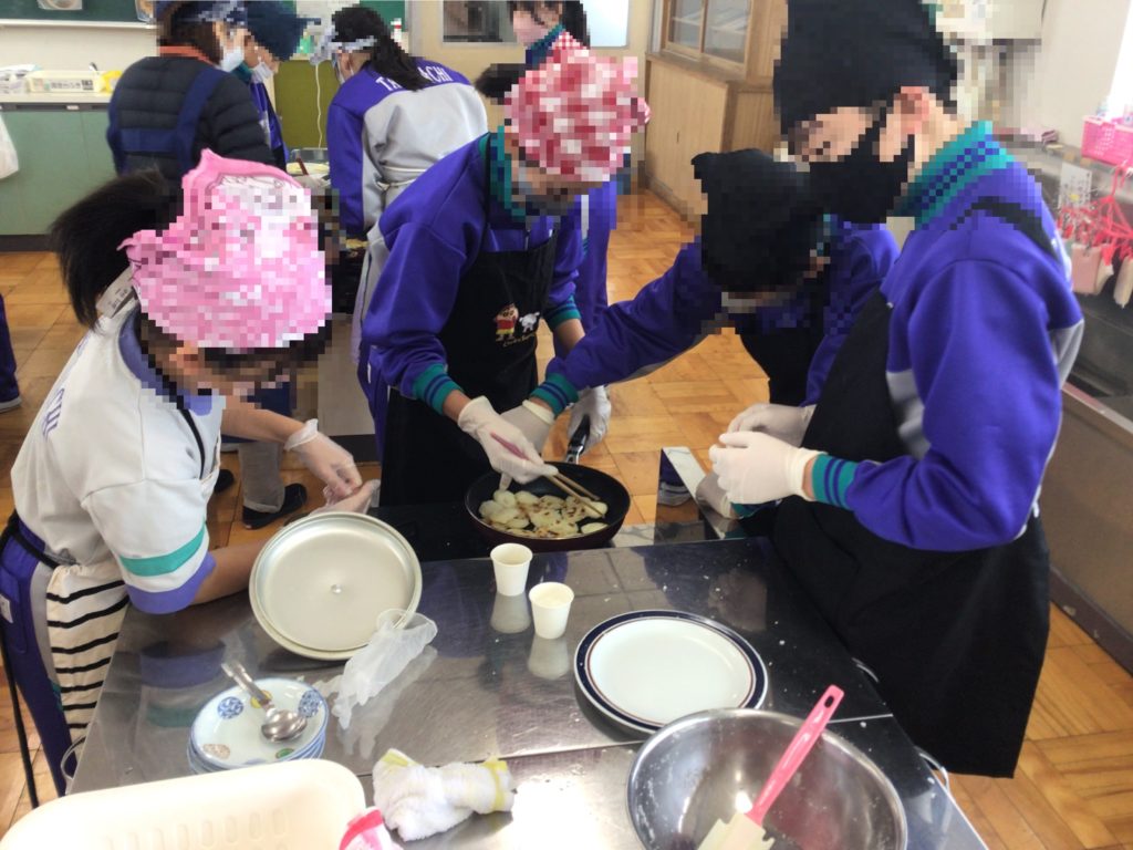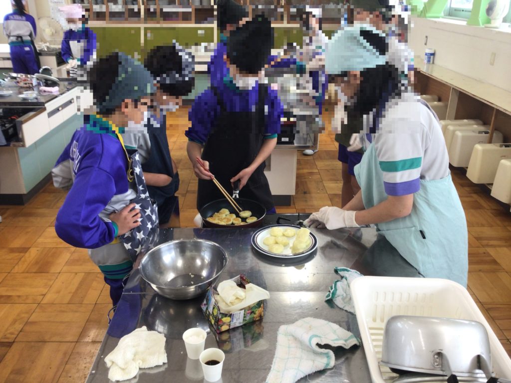 6年生は家庭科の調理実習で「ジャガイモもち」を作ります。楽しい調理実習では、教室のあちこちから歓声が聞こえてきます。
