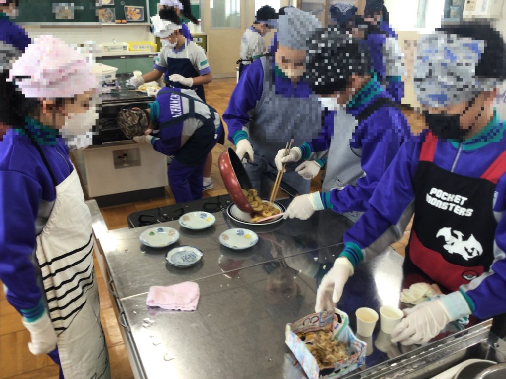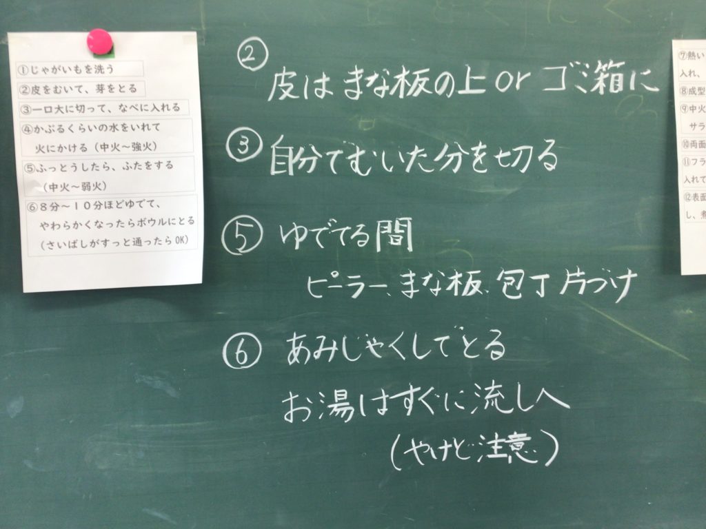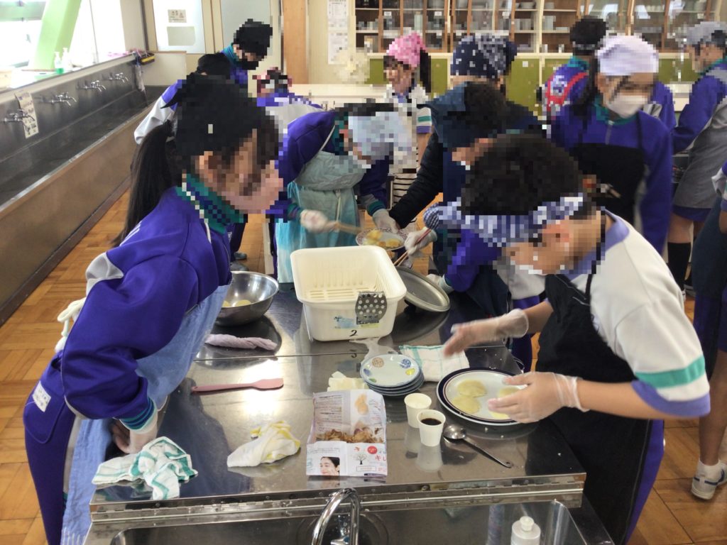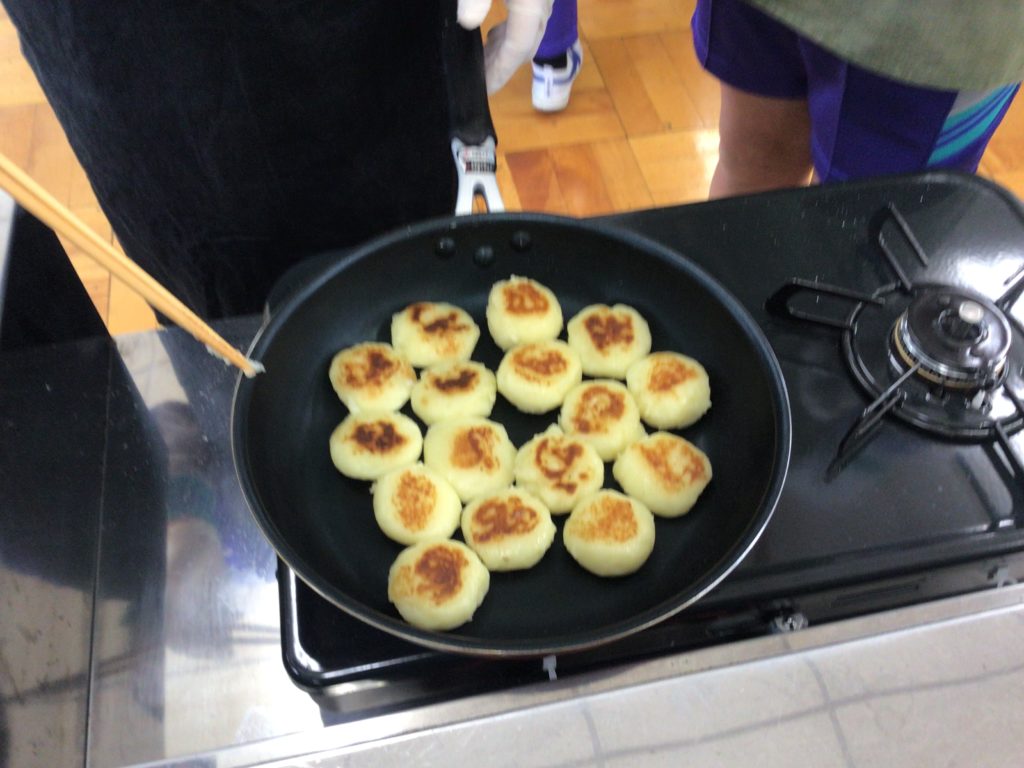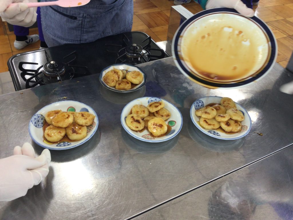 6年生は家庭科の調理実習で「ジャガイモもち」を作ります。楽しい調理実習では、教室のあちこちから歓声が聞こえてきます。