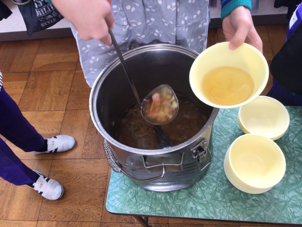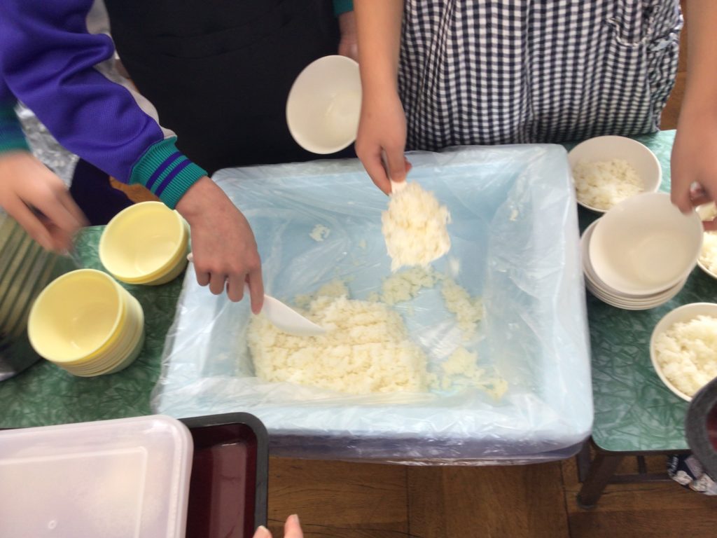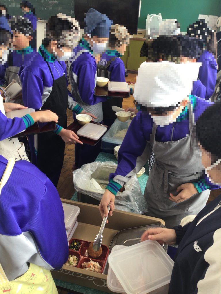 この日はご飯もついてきましたが、中学校では家で炊いたご飯を各自が弁当箱に入れて持参します。